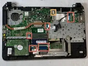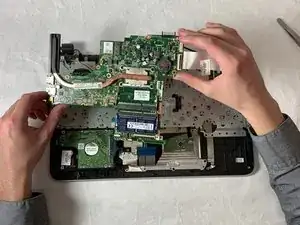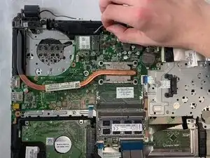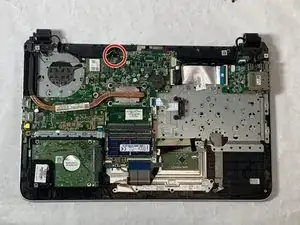 Используйте отвертку #000, чтобы удалить четыре винта 6 мм, прикрепляющие материнскую плату к корпусу ноутбука.