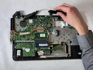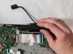 Отключите жгут проводов, который проходит через динамик, от материнской платы.