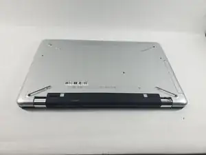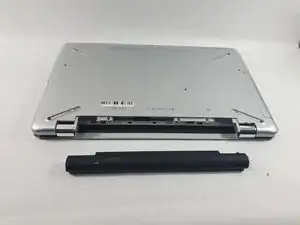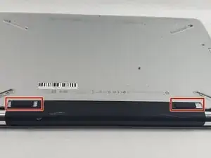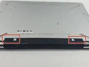 Переверните ноутбук так, чтобы нижняя сторона была обращена к вам.