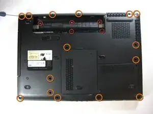 Пятнадцать (15) винтов Phillips длиной 7,2 мм крепят нижний корпус к верхнему корпусу ноутбука.