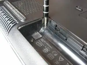 После удаления трех (3) винтов переверните ноутбук так, чтобы сторона с клавиатурой была вверх.