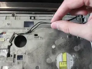 Отстегните чёрные кабели антенны WLAN от держателей, фиксирующих их на месте.