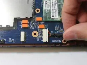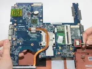 Поднимите материнскую плату и отведите её от корпуса ноутбука.