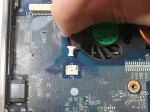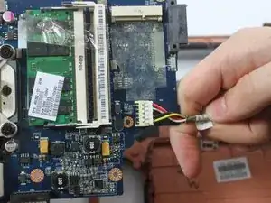 Отсоедините белый силовой разъём. Материнская плата теперь полностью извлечена.