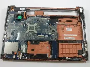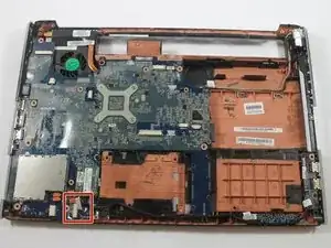 Материнская плата ещё полностью не извлечена.