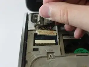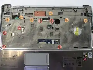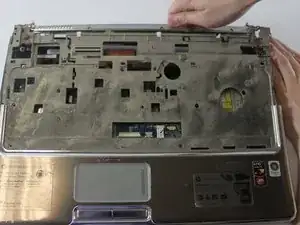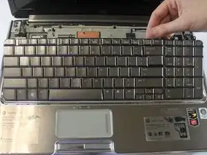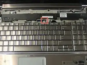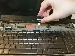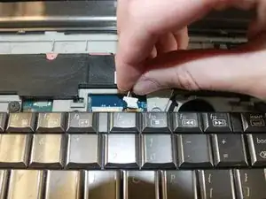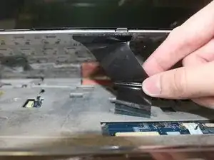 Частично приподнимите клавиатуру, чтобы получить доступ к лентовому кабелю под ней.