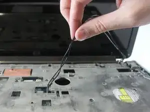 Отключите белый кабель у нижней части ноутбука.
