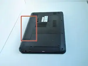 Переверните компьютер так, чтобы нижняя сторона была вверх, и найдите аккумулятор над петлями экрана.