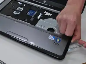 Снимите крышку плоским металлическим инструментом, начиная с места, где вы вынимали оптический привод.