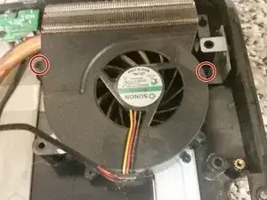 Удалите два винта M2.5x8, фиксирующих вентилятор процессора к корпусу, и снимите вентилятор.