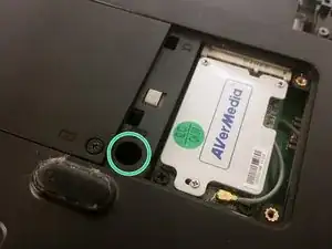 Снимите крышку, чтобы получить доступ к ещё одному длинному винту клавиатуры.