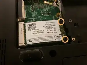 Удалите два винта M2.5x5, фиксирующих Wi‑Fi карту, и извлеките карту.