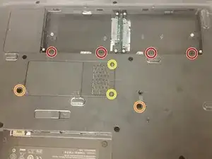 Удалите четыре нестандартных винта M2.5x4 с широкой головкой под местом расположения батареи.