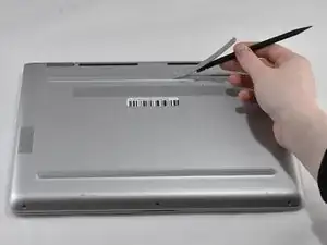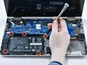 Снимите пять винтов Phillips #1 длиной 4.6 мм, расположенных вокруг аккумулятора.
