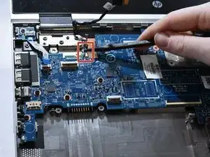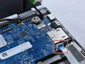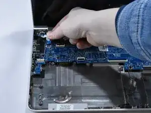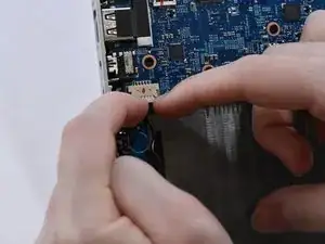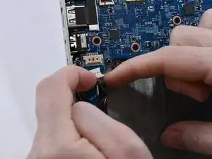 С помощью ногтей отсоедините кабель динамика от материнской платы, отодвинув разъём назад.