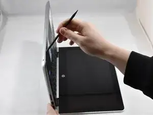 Откройте HP Pavilion так, чтобы экран был виден. Затем наклоните его вниз, чтобы экран оказался на спинке, лицом вверх.