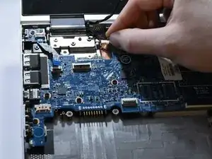 Отсоедините два кабеля антены WLAN, поддев кабель лопаткой, затем поднимая прямо вверх.