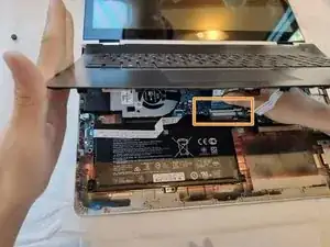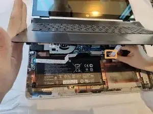 Отключите кабели панели клавиатуры под верхней крышкой.