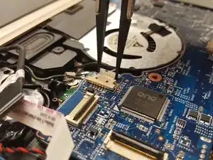 Используя пинцет, аккуратно отсоедините этот разъём от его гнезда.