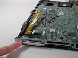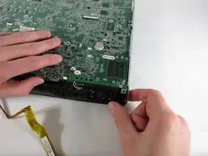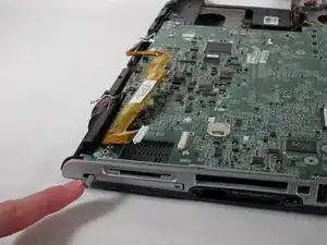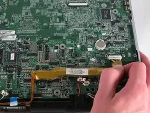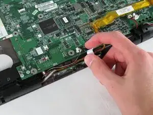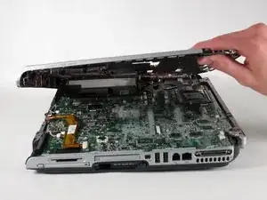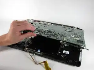 Поднимите материнскую плату до тех пор, пока она не освободится от нижней оболочки, и извлеките её из ноутбука.