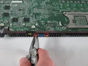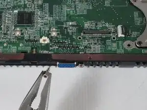 С помощью плоскогубцев отвинтите и удалите два болта с обеих сторон синего VGA-разъема.