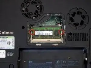 Удалите два винта с головкой Philips длиной 8 мм, помеченные буквой «K» на дне ноутбука.
