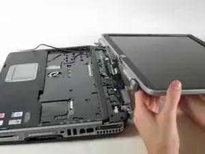 Поднимите экран вверх, чтобы отсоединить его от ноутбука.