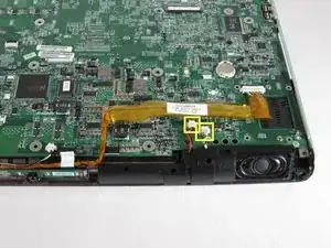Найдите шлейф на плате LED, расположенной в верхней части ноутбука.