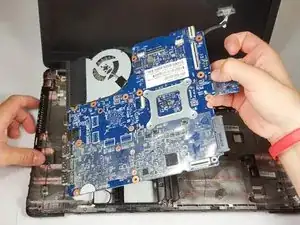 Продолжайте тянуть материнскую плату вверх и вправо, чтобы полностью отделить её от ноутбука.