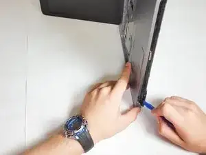 Используя пластиковый инструмент для вскрытия, медленно и осторожно отделите верхнюю крышку от нижней рамки.
