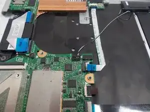 После снятия винтов отсоедините провод аккумулятора от материнской платы с помощью инструмента для вскрытия iFixit.