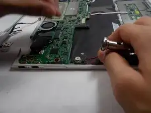 Используйте отвертку Phillips #000, чтобы удалить три винта 3,5 мм, удерживающие материнскую плату.