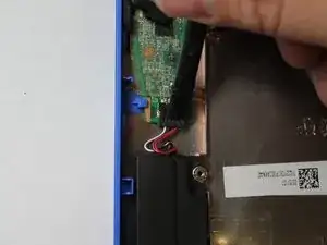 Используйте медиатор, чтобы отсоединить кабель блока питания (батареи).