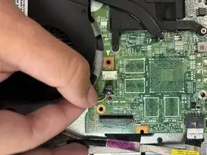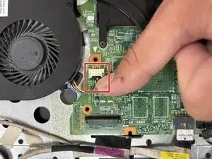 Отсоедините разъём провода правого динамика от материнской платы, потянув его наружу ногтем.