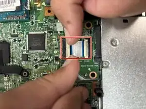 Откиньте чёрную защёлку разъёма ZIF. Отсоедините ленточный кабель.
