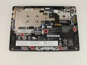 Снимите пять черных винтов длиной 3,9 мм крестовой отверткой Phillips #00, удерживающих аккумулятор.