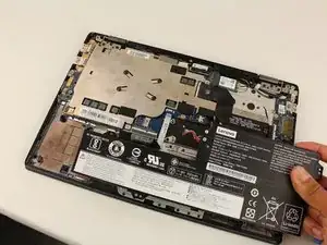 Снимите теперь отключённый аккумулятор с ноутбука.