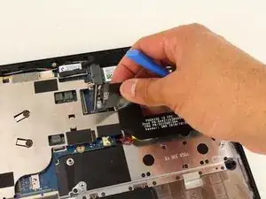 Используя пластиковый инструмент для вскрытия, пройдитесь им по краю корпуса ноутбука.