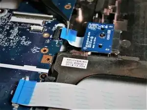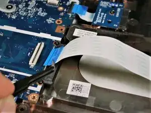 Отключите два шлейфа, затем, используя пластиковую лопатку, начните отделять панель для ладоней от корпуса. Начните вдоль переднего левого края и двигайтесь слева направо, разделяя половинки. Отделяйте левую и правую стороны аналогичным образом.