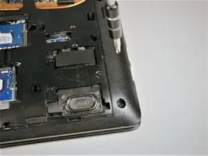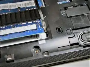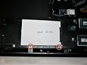 Удалите два винта #00x4.5 мм, крепящие жёсткий диск, затем сдвиньте диск в сторону и извлеките его.