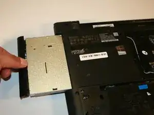 Удалите фиксирующий винт привода CD (#00x5.5 мм) и выдвиньте привод из посадочного места.