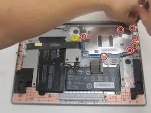 Удалите десять винтов Torx T5 длиной 1.5 мм с задней стороны ноутбука.