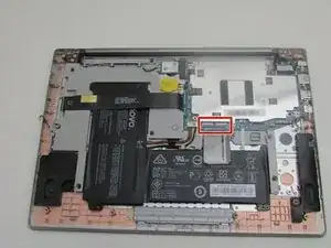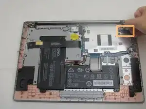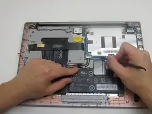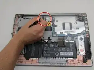 Используя лопатку, отключите шлейф клавиатуры от материнской платы.