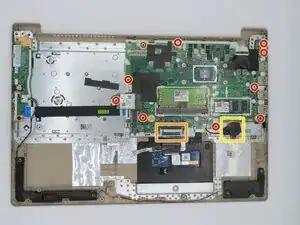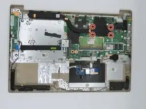 Используя крестовую отвертку #0, снимите пять винтов M2 x 3,5 мм, фиксирующих аккумулятор.