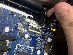 Пинцетом аккуратно выньте JST-кабель вентилятора из его гнезда.