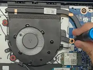 Используйте крестовую отвёртку Phillips #00, чтобы вынуть четыре винта 2,5 мм, крепящие радиатор.