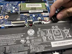 С помощью лопатки или пинцета выдавите JST-разъём батареи CMOS из его гнезда.