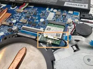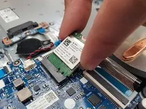 Откручивание одного из серебристых винтов вызовет подъём модуля Wi‑Fi. Если ваша новая материнская плата не поставляется с модулем Wi‑Fi, извлеките модуль и установите его на новую плату.