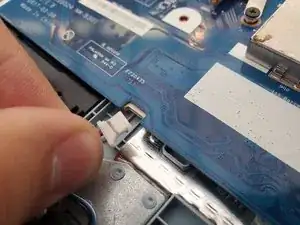 Отсоедините кабель дисплея, приподняв чёрную планку ZIF-разъёма с помощью приспособления для раскрытия и аккуратно вытянув кабель.