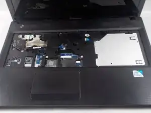 Поднимите рамку клавиатуры (с тачпадом) строго вверх и выньте её.